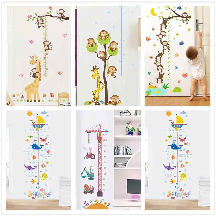 Special Offer of % Cute animals Monkey Giraffe Underwater height measure wall stickers decal kids vinyl wallpaper mu