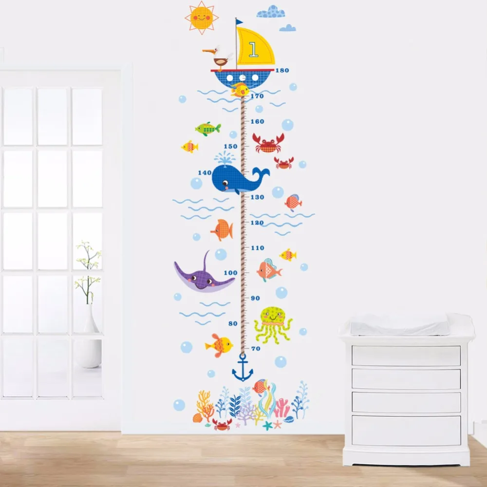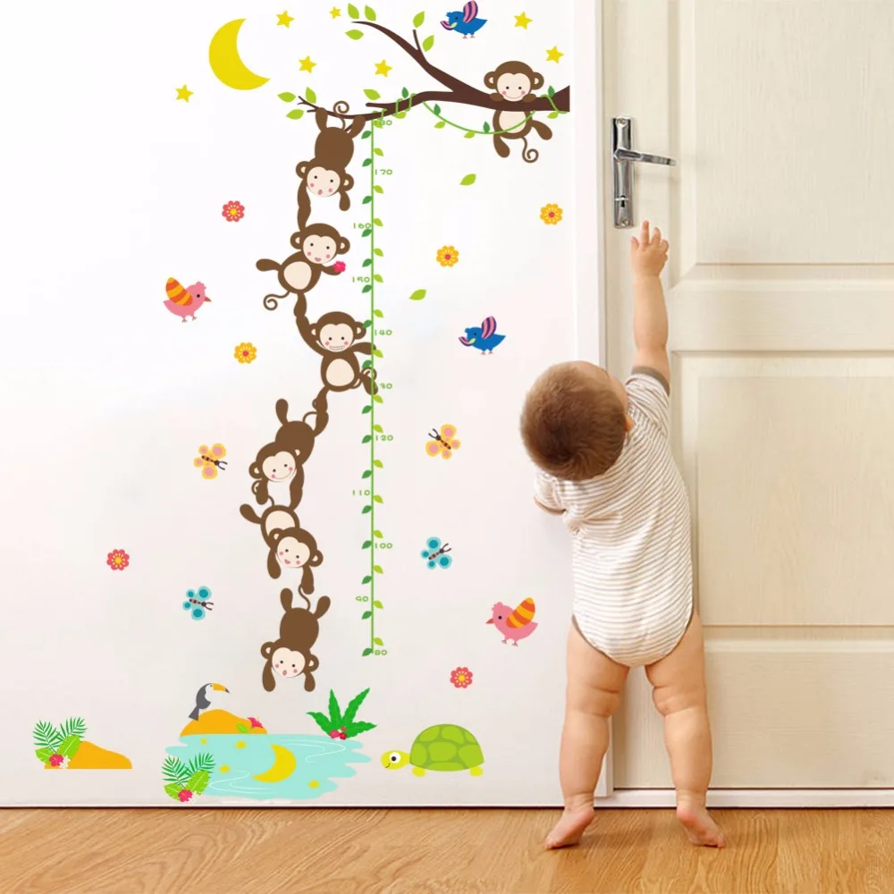 .image for % Cute animals Monkey Giraffe Underwater height measure wall stickers decal kids vinyl wallpaper mu